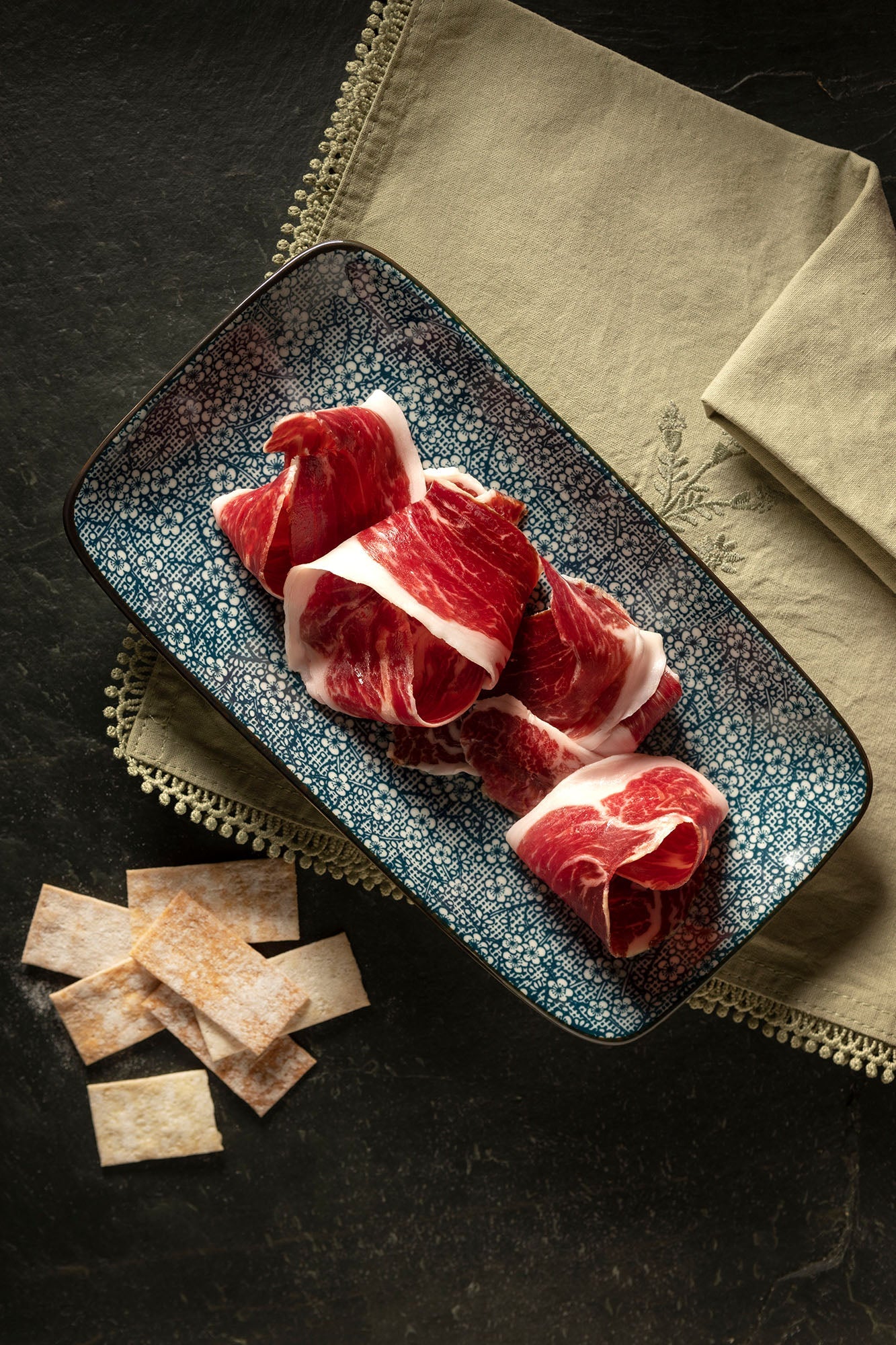 Cured for a minimum of 18 months using traditional methods in La Alberca, a mountain village in a UNESCO World Heritage Natural Reserve. The unique microclimate and centuries-old techniques create exceptional flavor and texture.