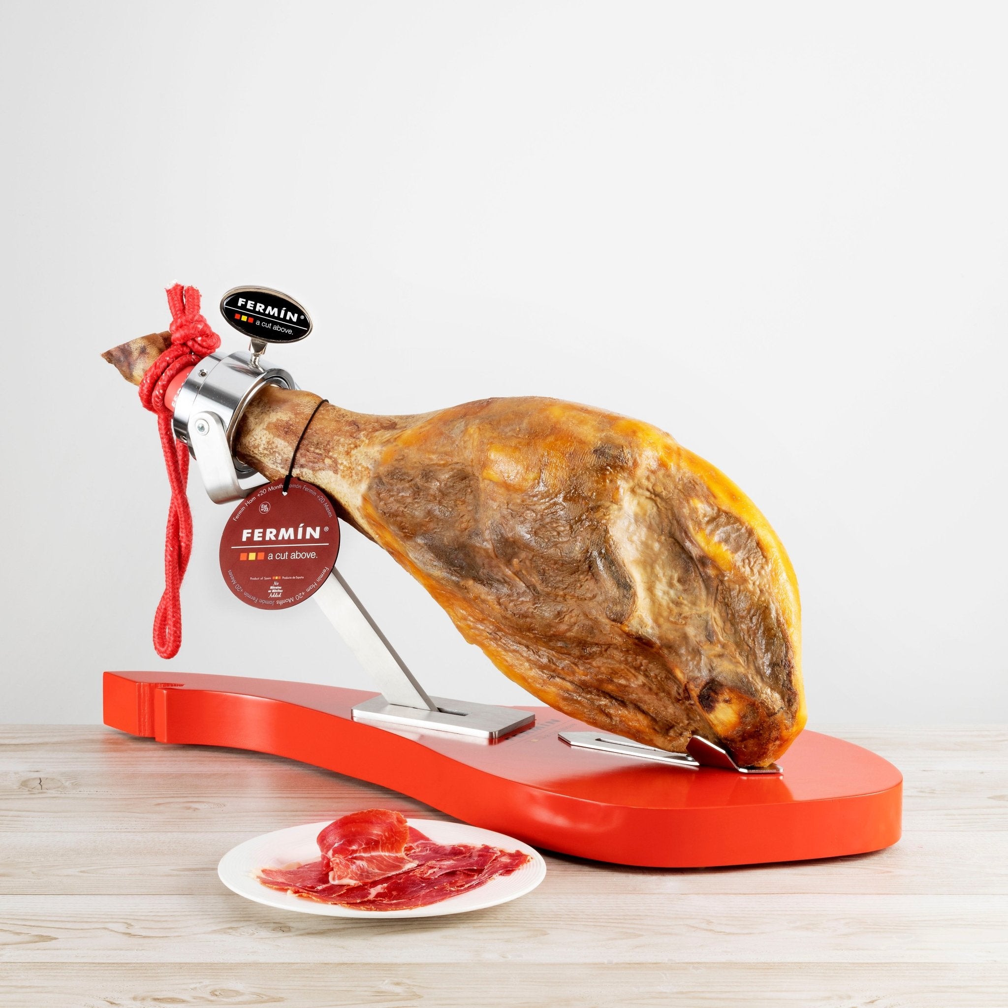 Crafted from pigs born, raised, and processed entirely in Spain, ensuring true authenticity and quality. Fermín pigs are older, heavier, and have a higher fat content than standard European breeds—resulting in a more flavorful and complex ham.