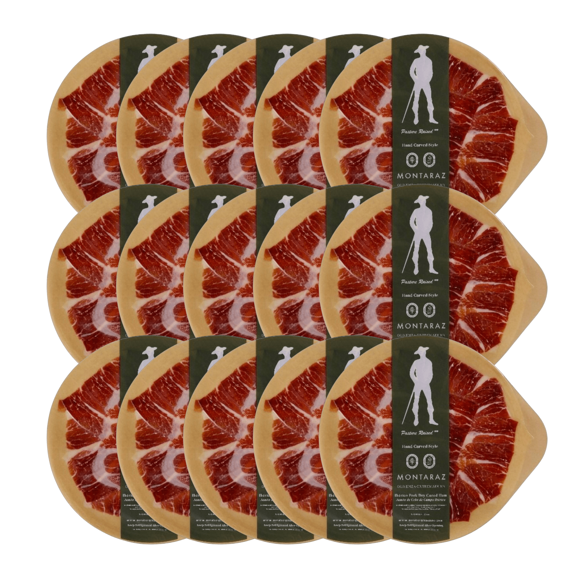 Savor the exceptional taste of Montaraz Ibérico Free-Range Ham with this box of 15 ready-to-eat plates, perfect for gourmet gatherings, exclusive events, or adding a touch of luxury to everyday meals. Whether you’re hosting a wine tasting, crafting a charcuterie board, or simply enjoying a savory snack, these plates provide unmatched convenience without compromising on quality. Experience the rich, nutty flavor and delicate texture that only authentic Ibérico ham can offer.