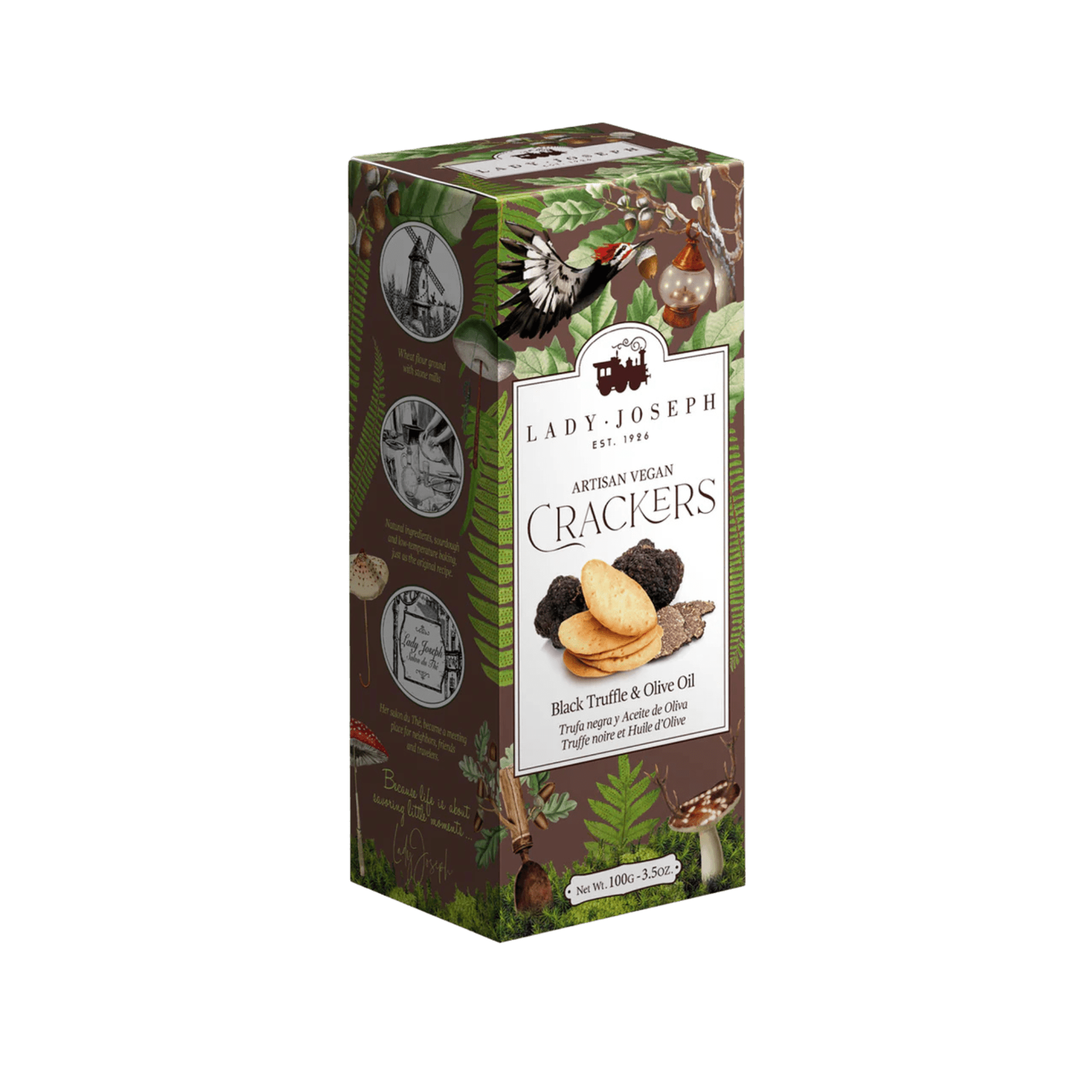 The crackers also feature Tuber Aestivum, or Summer Truffle, which grows from early summer to autumn. Known for its angular wrinkles and dark brown tone, the Summer Truffle has a distinctive, intense perfume and flavor.