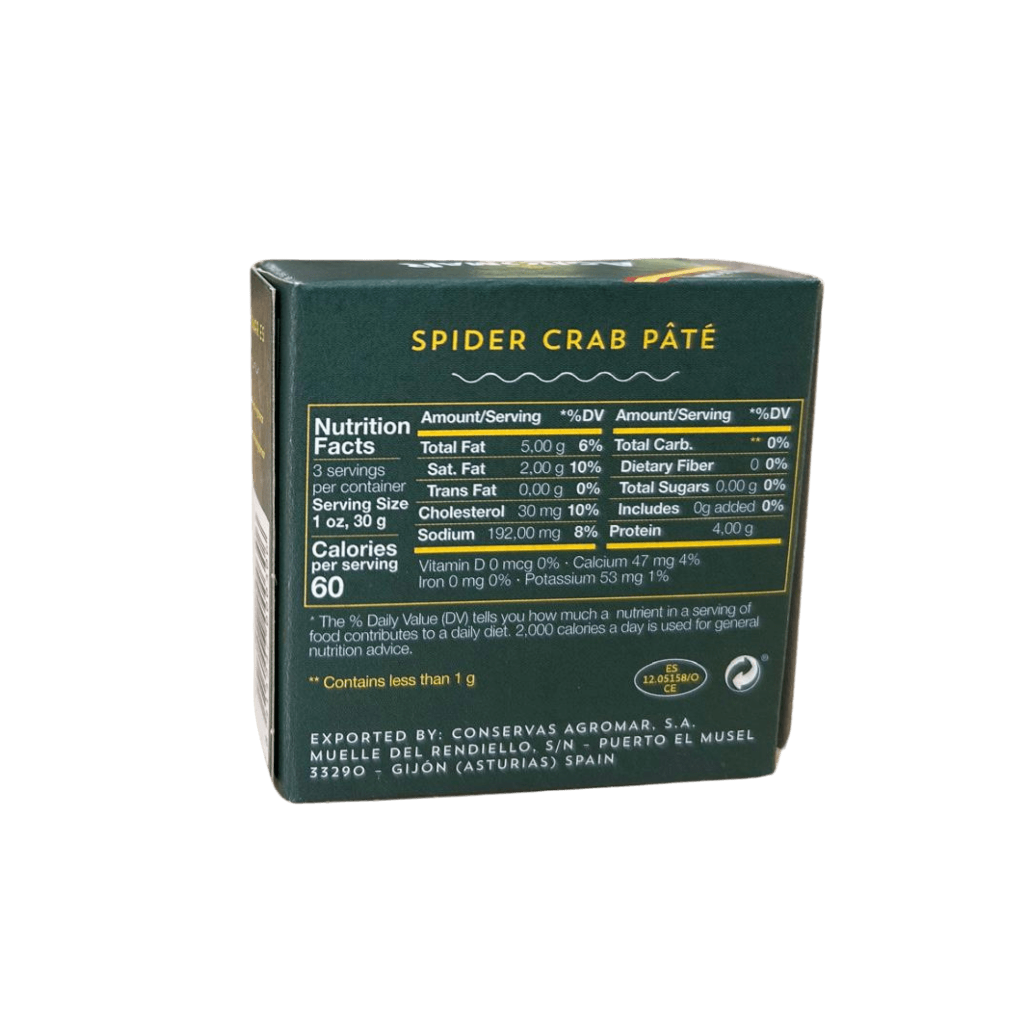 Savor the rich, sweet flavor of Agromar’s Spider Crab Pâté. This creamy spread features succulent spider crab meat, offering a refined taste of the sea. Perfect for appetizers or elegant canapés, it adds a touch of sophistication to any occasion. Ideal for seafood lovers and gourmet experiences.