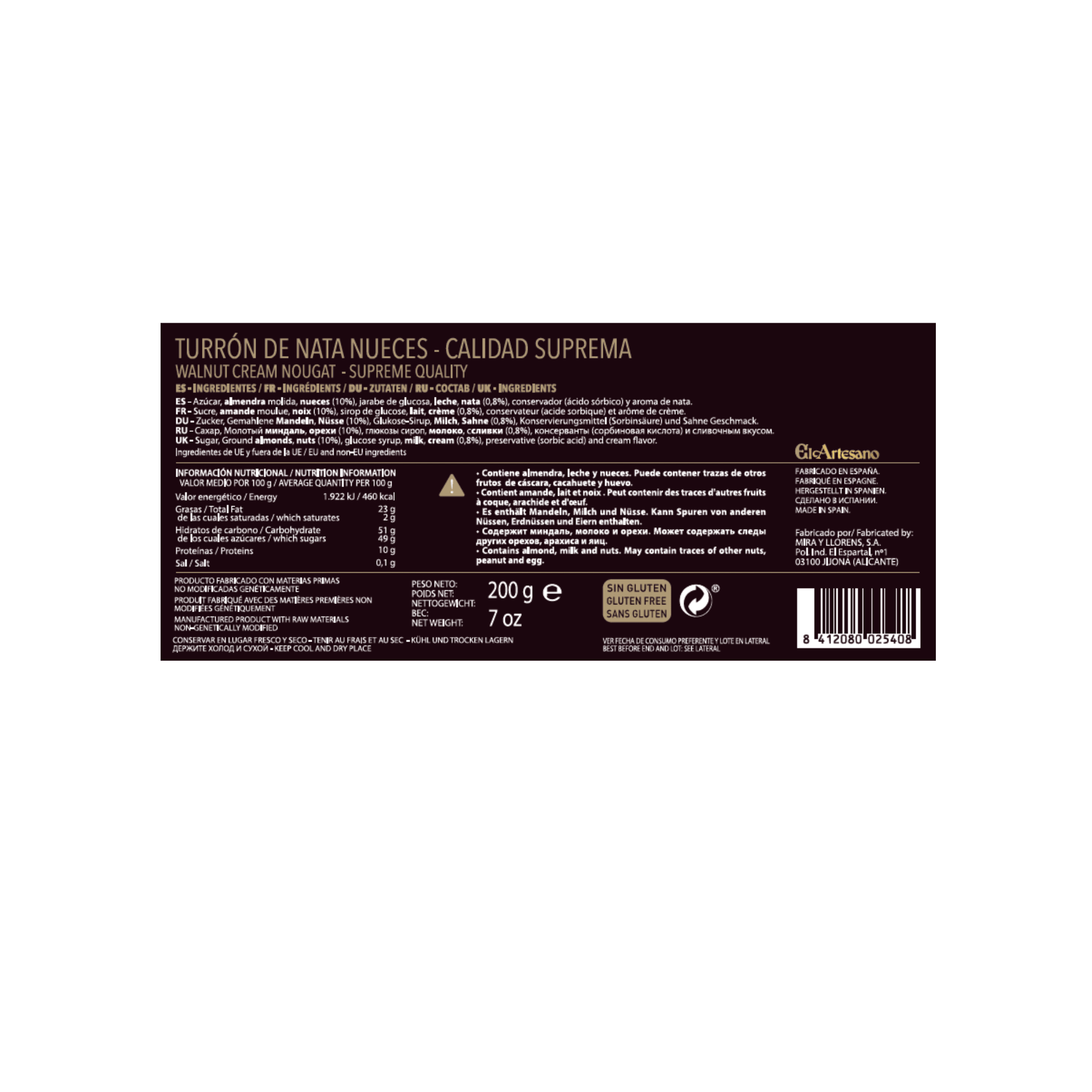 Allergen Info: Contains almonds, walnuts, milk, and cream. May contain traces of other nuts and peanuts.