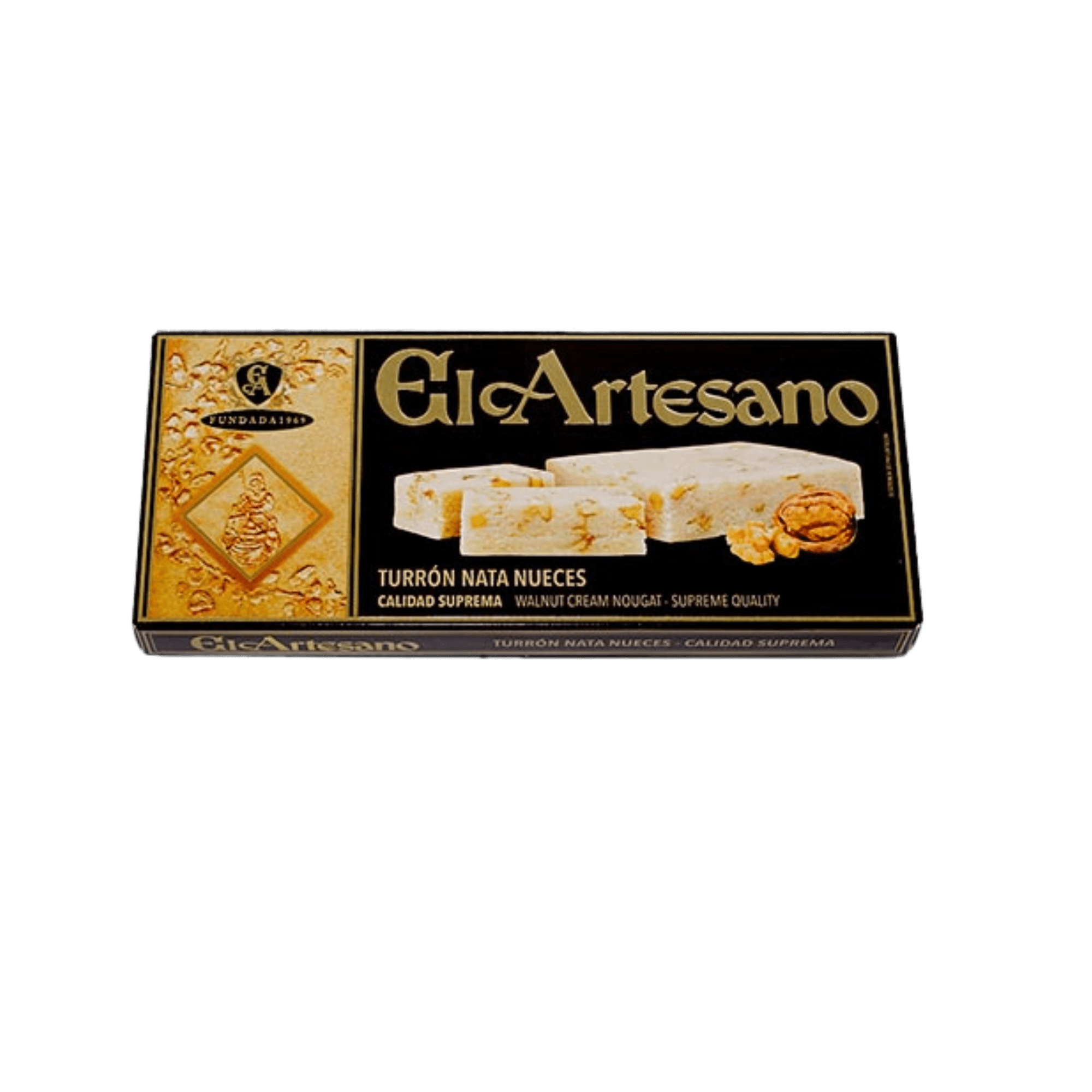 Experience the delicate sweetness of Spain’s artisanal tradition with El Artesano's Cream and Nut Nougat (Turrón de Nata y Nueces). Crafted in Jijona by one of the most respected nougat producers in Spain, this supreme-quality treat combines velvety marzipan, aromatic cinnamon, and crunchy walnuts for a rich and satisfying bite.