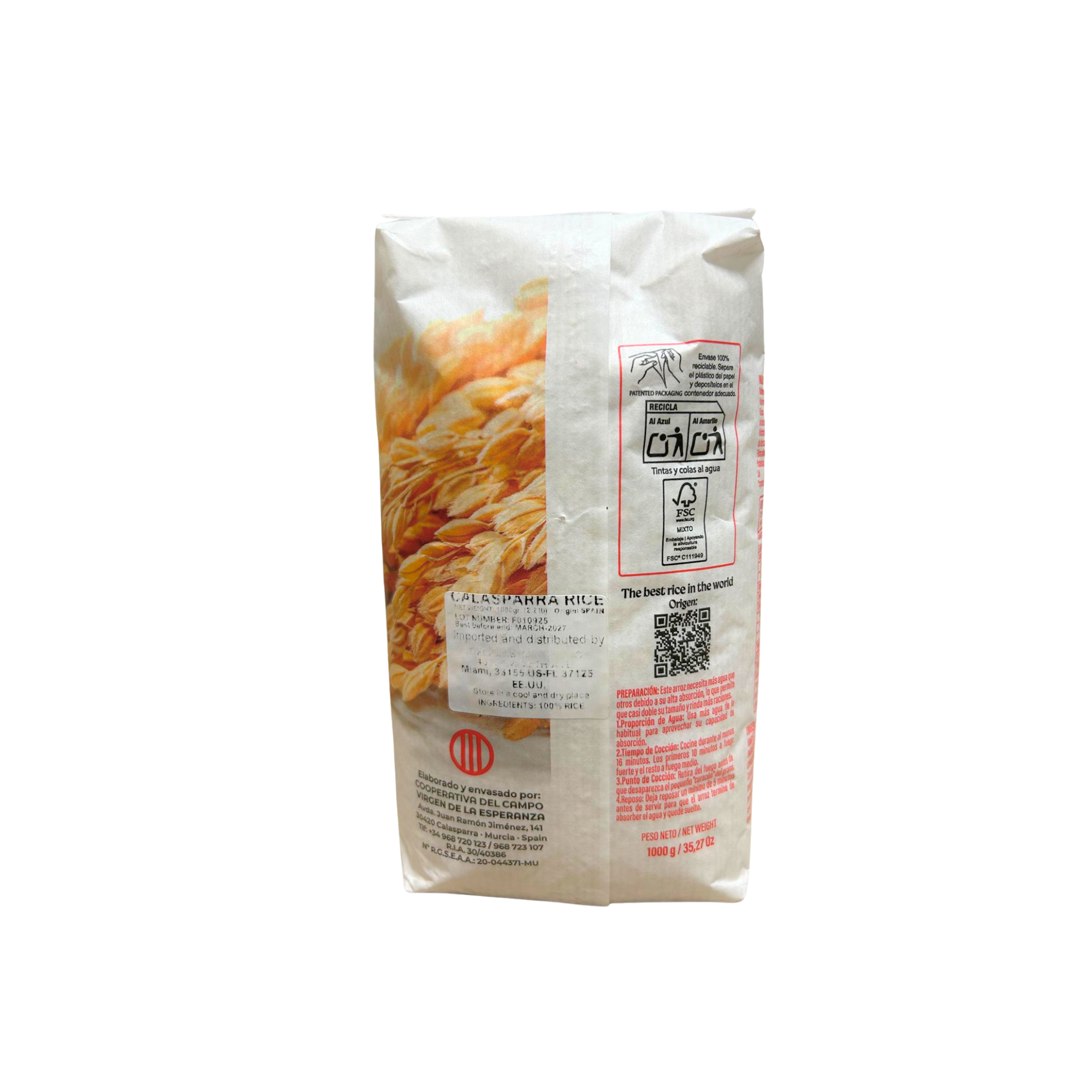 El Arroz de Calasparra con Denominación de Origen Protegida (DOP) es uno de los arroces para paella más prestigiosos de España. Cultivado en la región montañosa de Calasparra mediante métodos tradicionales y sin el uso de productos químicos, este arroz premium de grano redondo absorbe el sabor de forma excepcional, manteniéndose firme y perfectamente suelto.