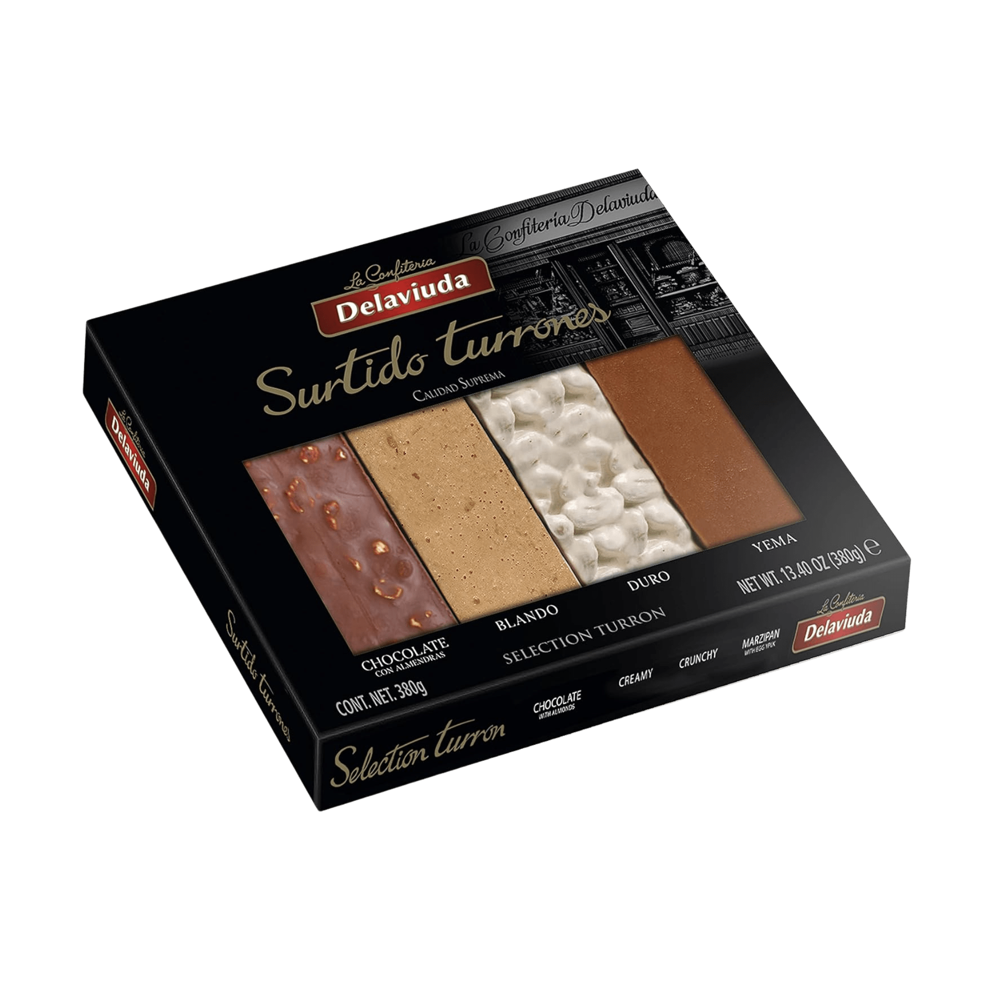 Celebra el espíritu de las fiestas con el Surtido de Turrones Delaviuda, una elegante caja que reúne cuatro de los turrones más apreciados de España, elaborados artesanalmente con los mejores ingredientes y el saber hacer transmitido durante generaciones.