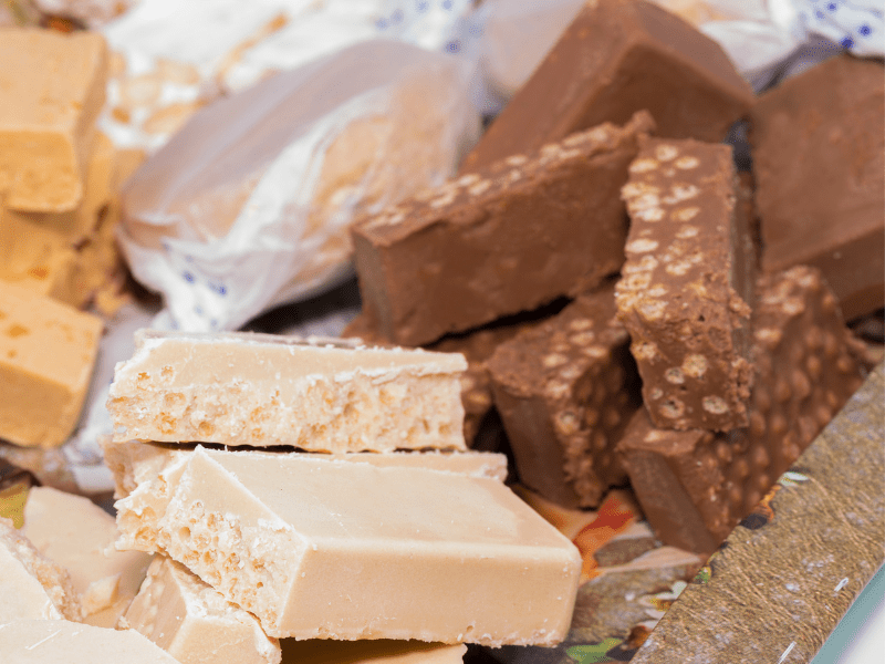 Turrón de Chocolate con Almendras — rico y cremoso, con un delicado toque crujiente.