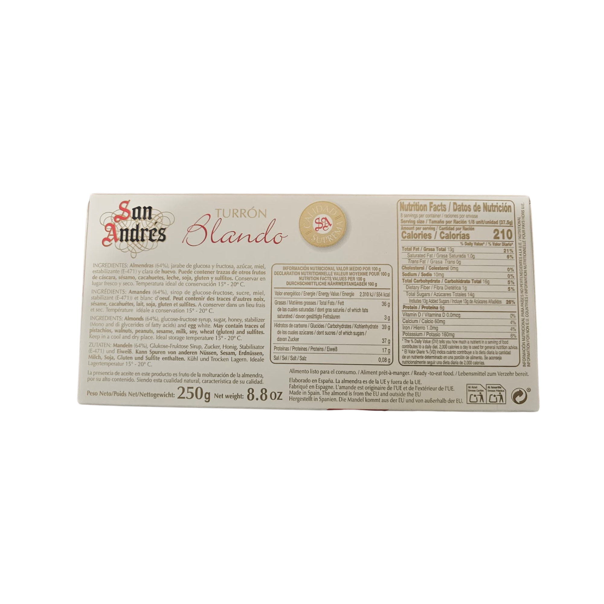 Disfrura del auténtico sabor de uno de los dulces navideños más queridos de España, el turrón blando de almendras , un turrón cremoso que se derrite en la boca elaborado con un 64% de almendras premium y sin azúcar añadido , pero lleno del mismo sabor y aroma tradicionales que hacen que este clásico sea irresistible.