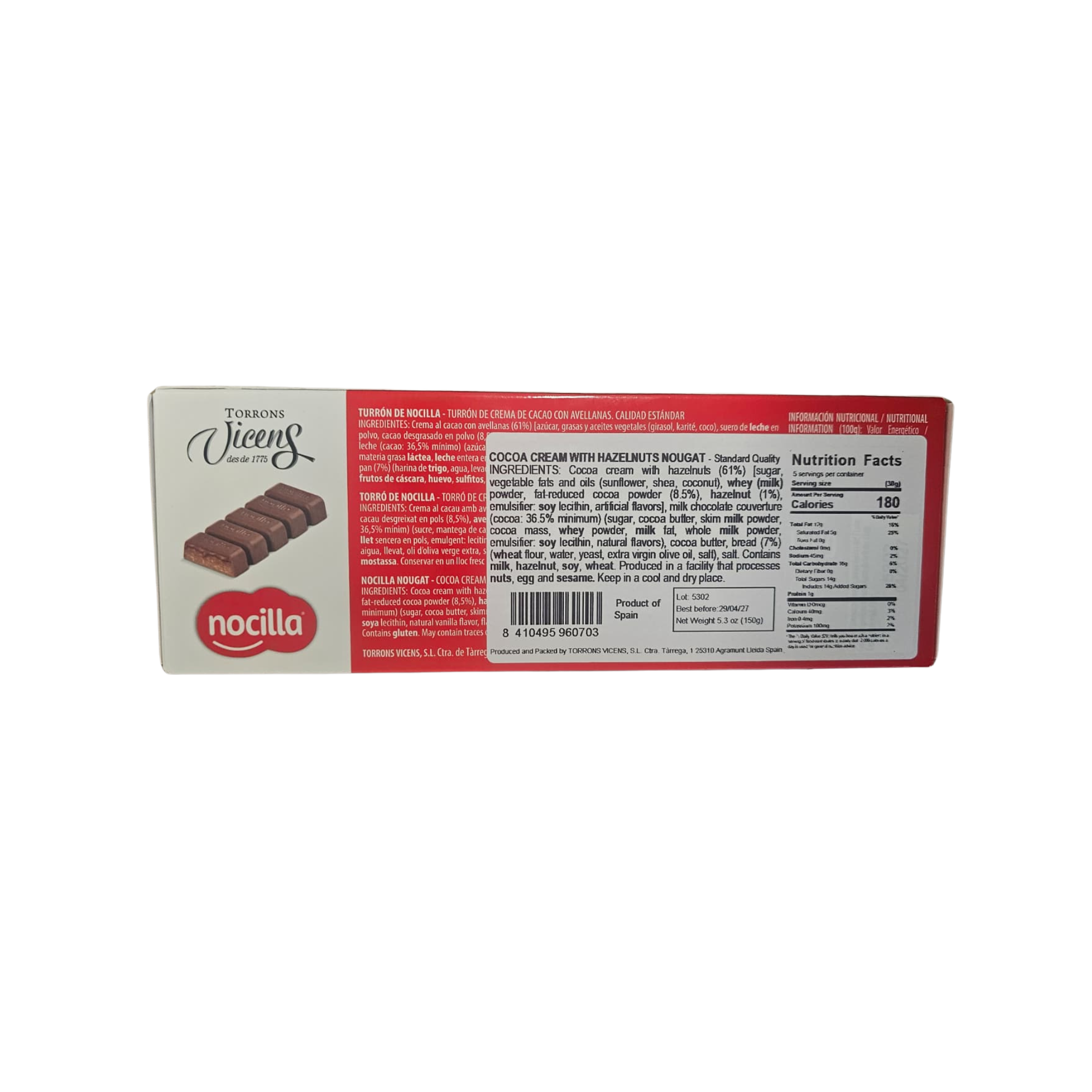 Una fusión deliciosa de suave Nocilla®, praliné de avellana y sedoso chocolate: este turrón moderno aporta un toque divertido a un clásico favorito de muchos. Elaborado por Torrons Vicens, los legendarios maestros del turrón en España, combina técnicas artesanales tradicionales con el sabor icónico de la crema de cacao y avellanas más famosa del país.