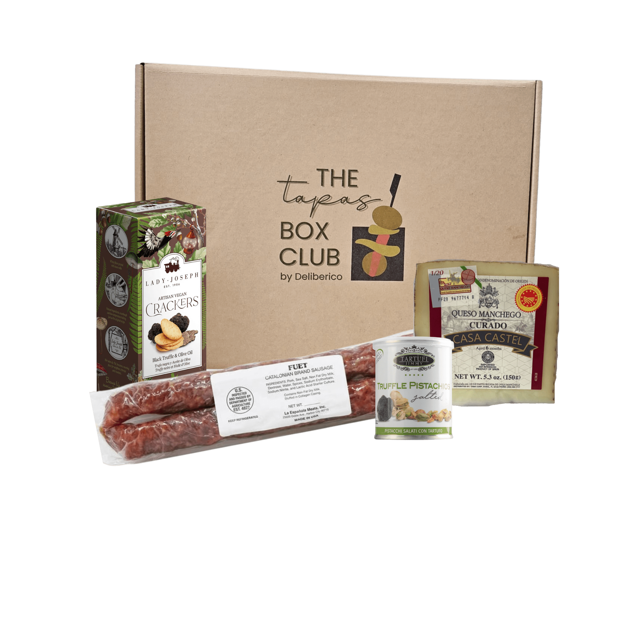 Eleva tu experiencia gastronómica con la Caja de tapas Sabores de Trufa —una exquisita selección de bocados gourmet pensada para verdaderos amantes del sabor. Disfruta del sabor intenso y especiado del Fuet curado, conocido por su profundidad de sabor y notas ligeramente picantes, perfectamente acompañado del carácter cremoso y firme del Queso Manchego Curado. Deléitate con el aroma inconfundible de la trufa en cada bocado de nuestras crujientes Galletas Saladas Artesanas con Trufa Negra y Pistachos con Trufa y Sal, que aportan un toque crujiente y un final lleno de lujo.
