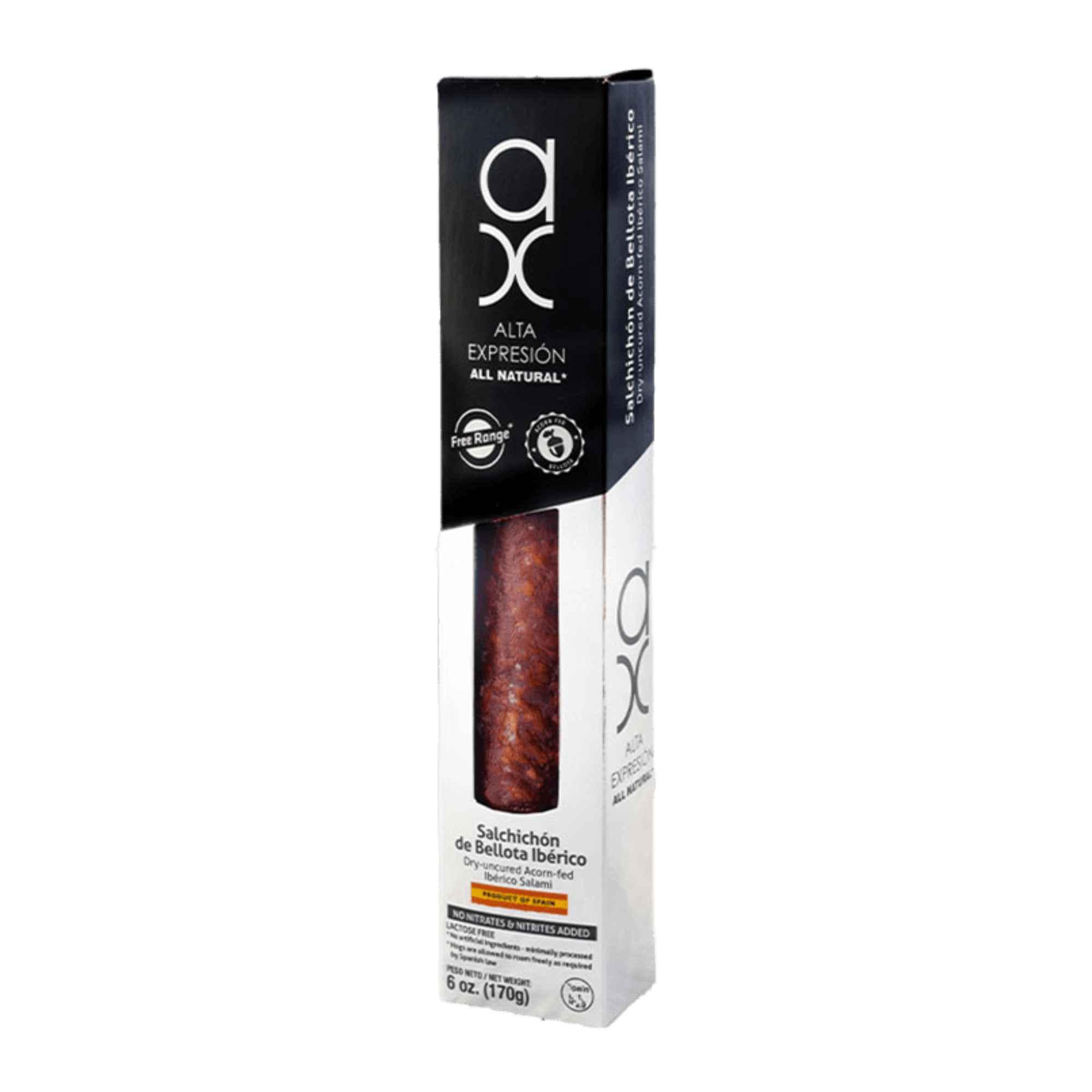 Elaborado con la mejor carne ibérica de bellota, este salchichón curado ofrece una textura sedosa y un sabor refinado con notas de nuez moscada, pimienta negra y especias naturales.