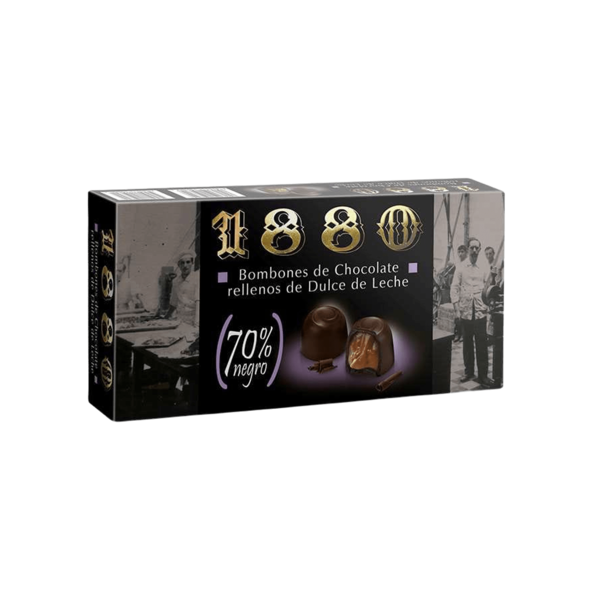 Deliciosos bombones elaborados a mano, cubiertos de chocolate negro 70% y rellenos con un cremoso dulce de leche inspirado en la receta tradicional argentina. Un equilibrio perfecto entre la intensidad del cacao y la dulzura del caramelo.