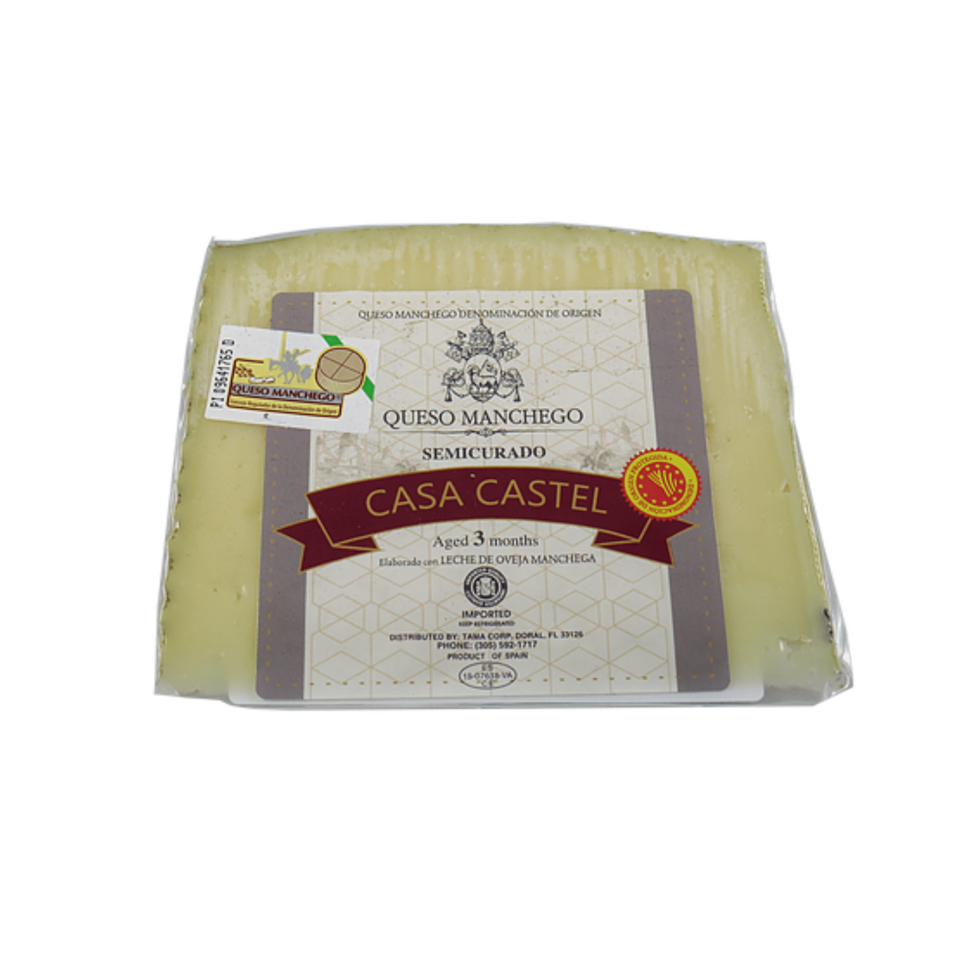 Este queso es de Denominación de Origen “Queso Manchego”, de La Mancha, España. Se trata de un queso de pasta prensada elaborado con leche de oveja de raza manchega, con una curación de 3 meses. INGREDIENTES: Leche pasteurizada de oveja manchega, sal, cuajo, fermentos lácticos y lisozima. Corteza no comestible. Contiene Sorbato potásico, Sorbato cálcico y Natamicina como conservantes. Contiene huevo y leche. TAMAÑO : 150 gr por cuña.