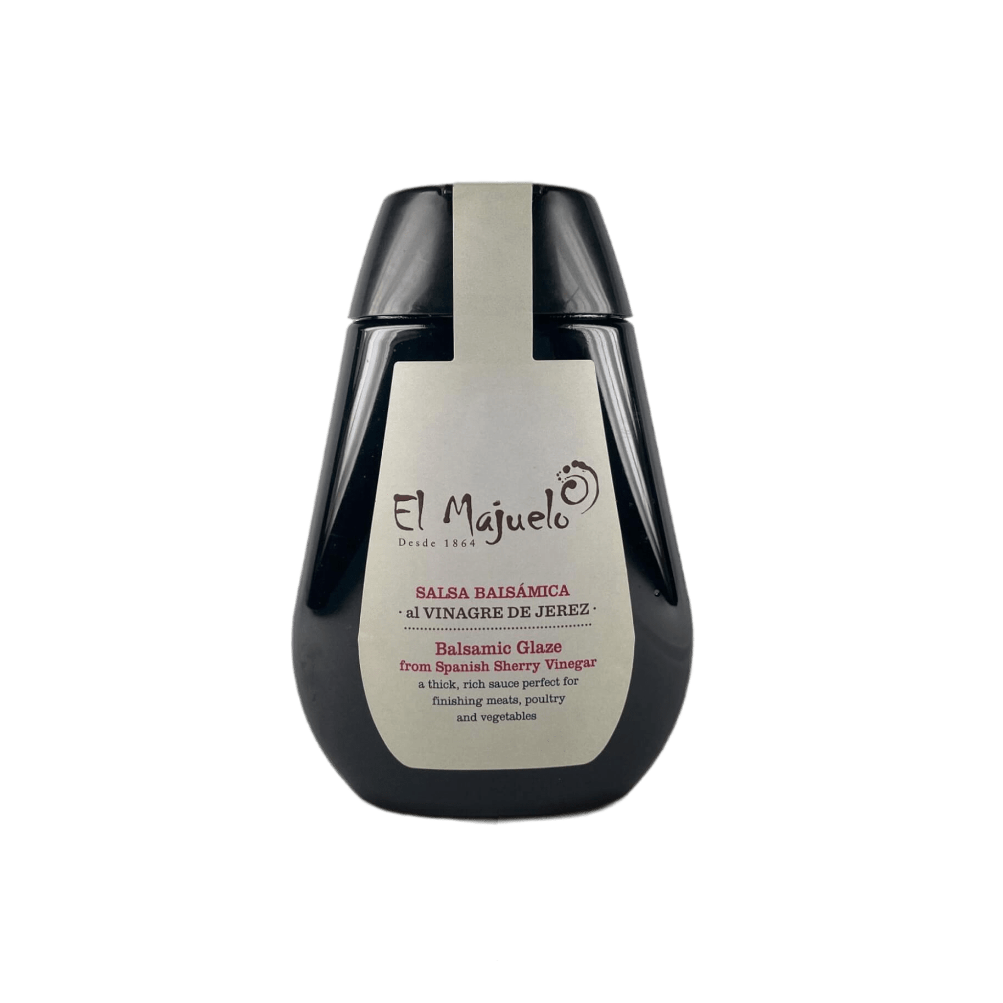 Vinagre de Jerez, vino dulce Pedro Ximénez, caramelo de mosto de uva, espesante de goma xantana (E-415) y estabilizante (E-202). Sin gluten.
