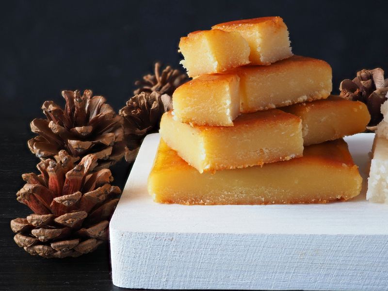 ✔ Base cremosa de almendra y yema, con cobertura caramelizada