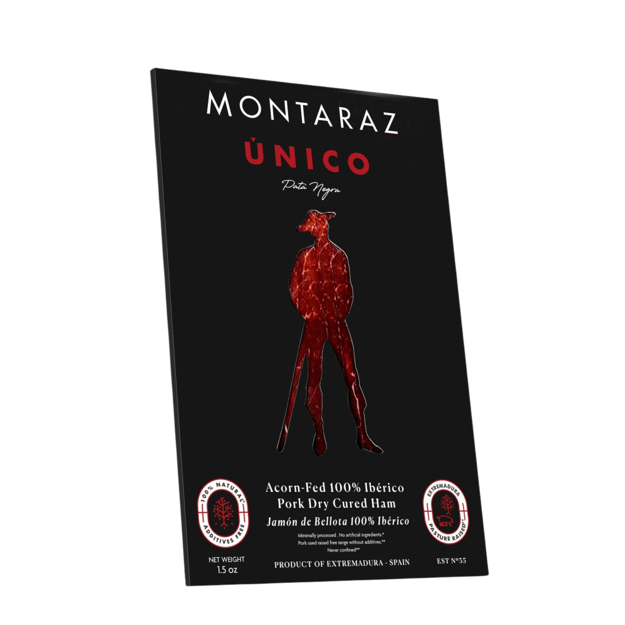 Enjoy the taste of Spain with Montaraz's 100% Iberico Acorn-fed Ham Sliced Unico. This authentic Spanish charcuterie must is made with premium Iberian ham, perfect for adding flavor to any dish or just on its own is simply delectable. Experience the incredible flavor of the finest Spanish ham!