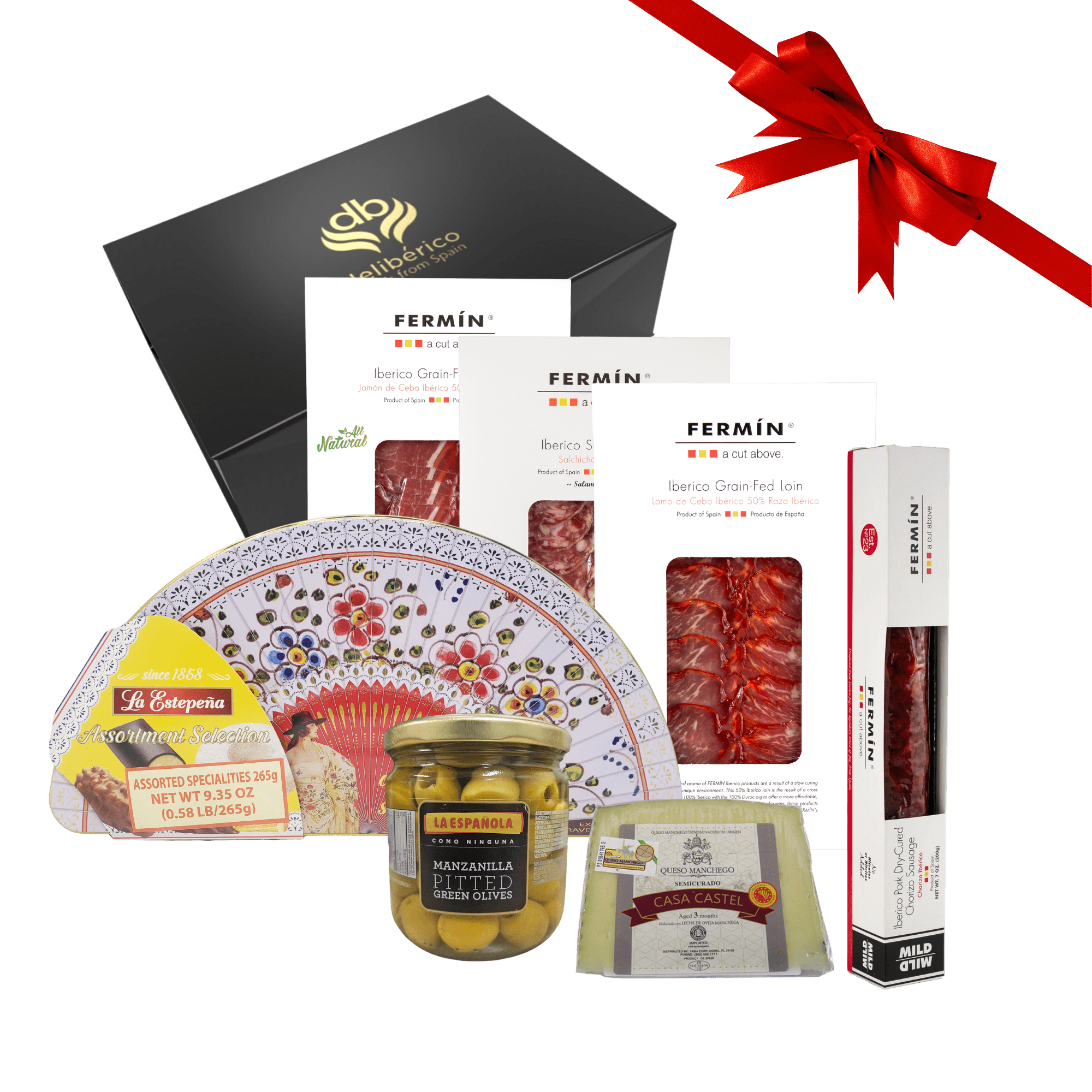Bursting with the best flavors of Spain — from artisanal charcuterie and fine Manchego cheese to savory olives and indulgent pastries — this gourmet collection brings holiday cheer to every table. Elegantly packed in our signature black and gold box, it’s the ultimate gift to unwrap this season.
