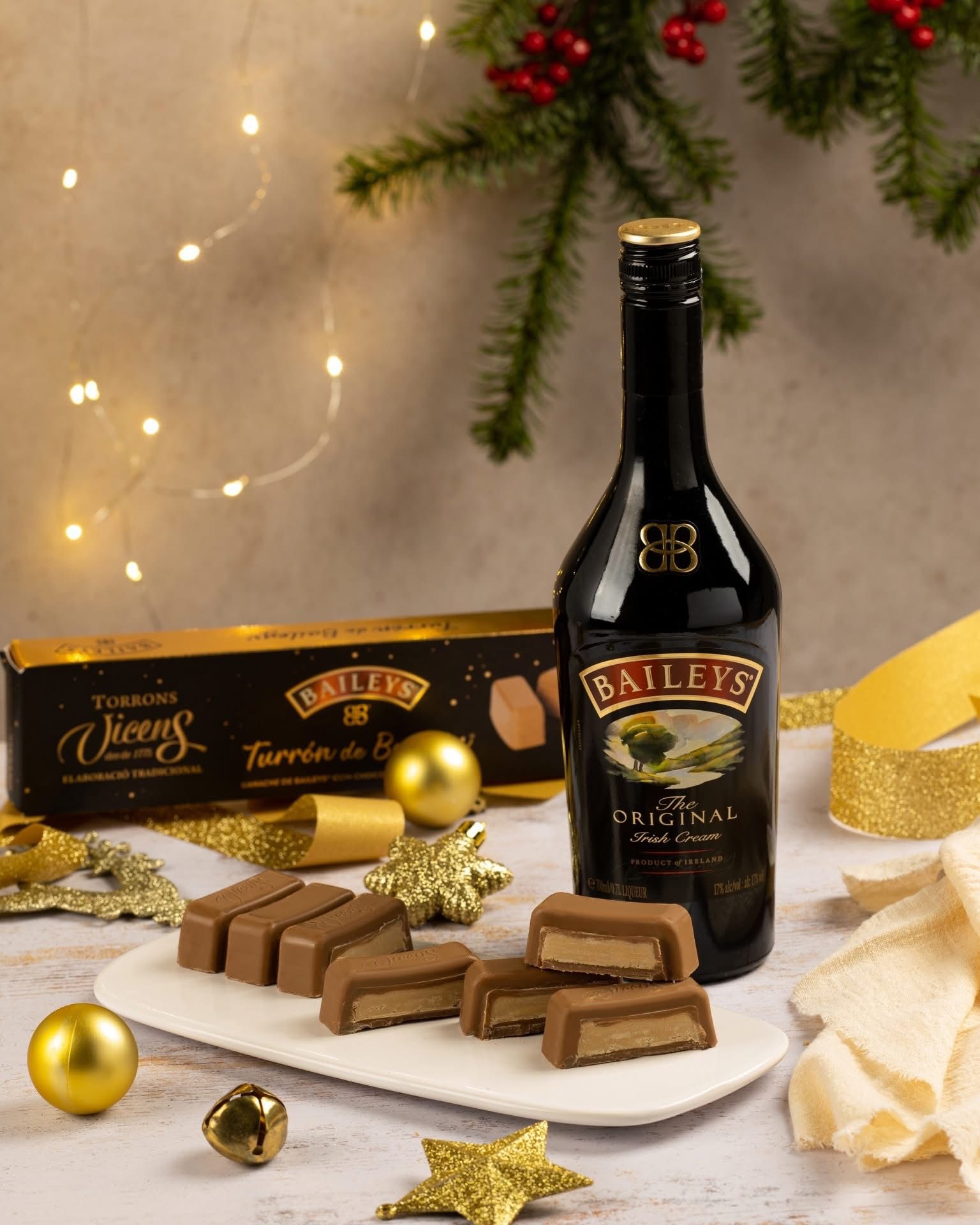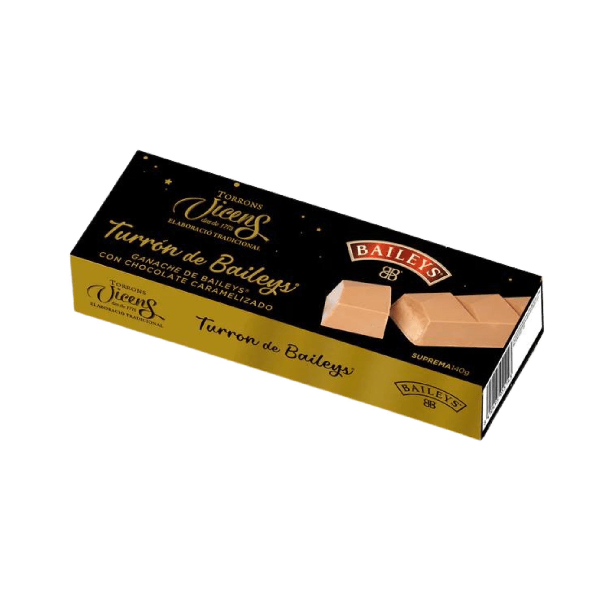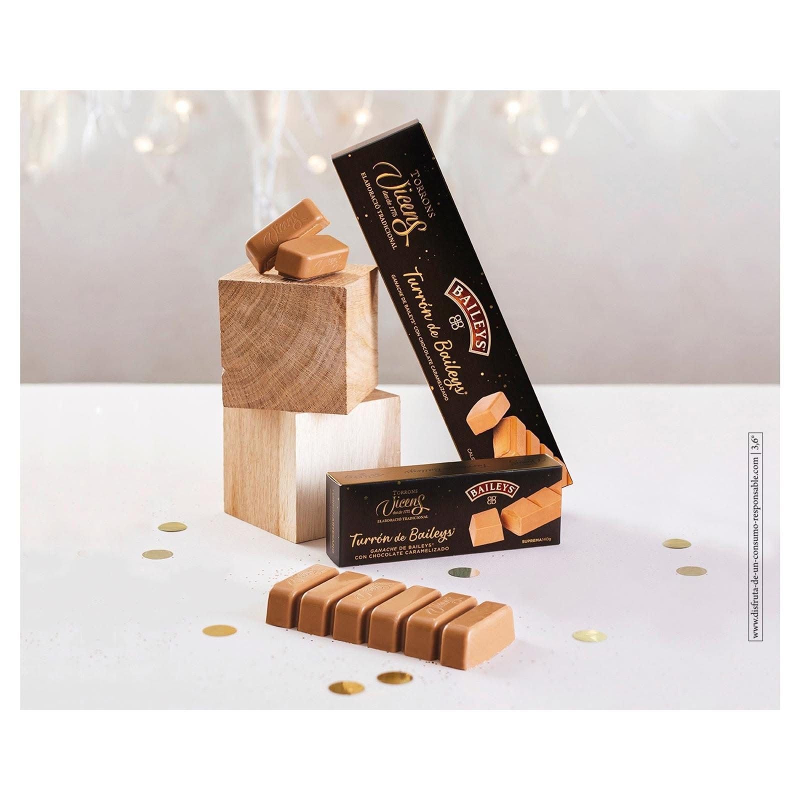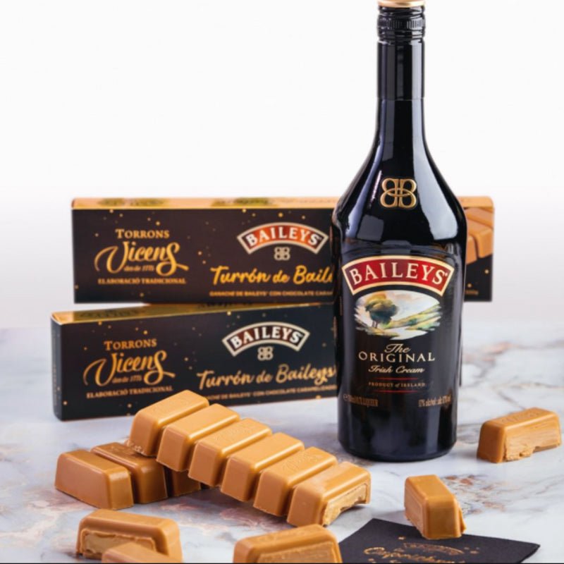 Discover indulgence with the Baileys Nougat by Torrons Vicens, a gourmet creation that perfectly blends innovation and tradition. This unique nougat features a smooth Baileys Ganache — combining the creamy flavor of the world-famous Irish liqueur with the sweetness of caramelized white chocolate.