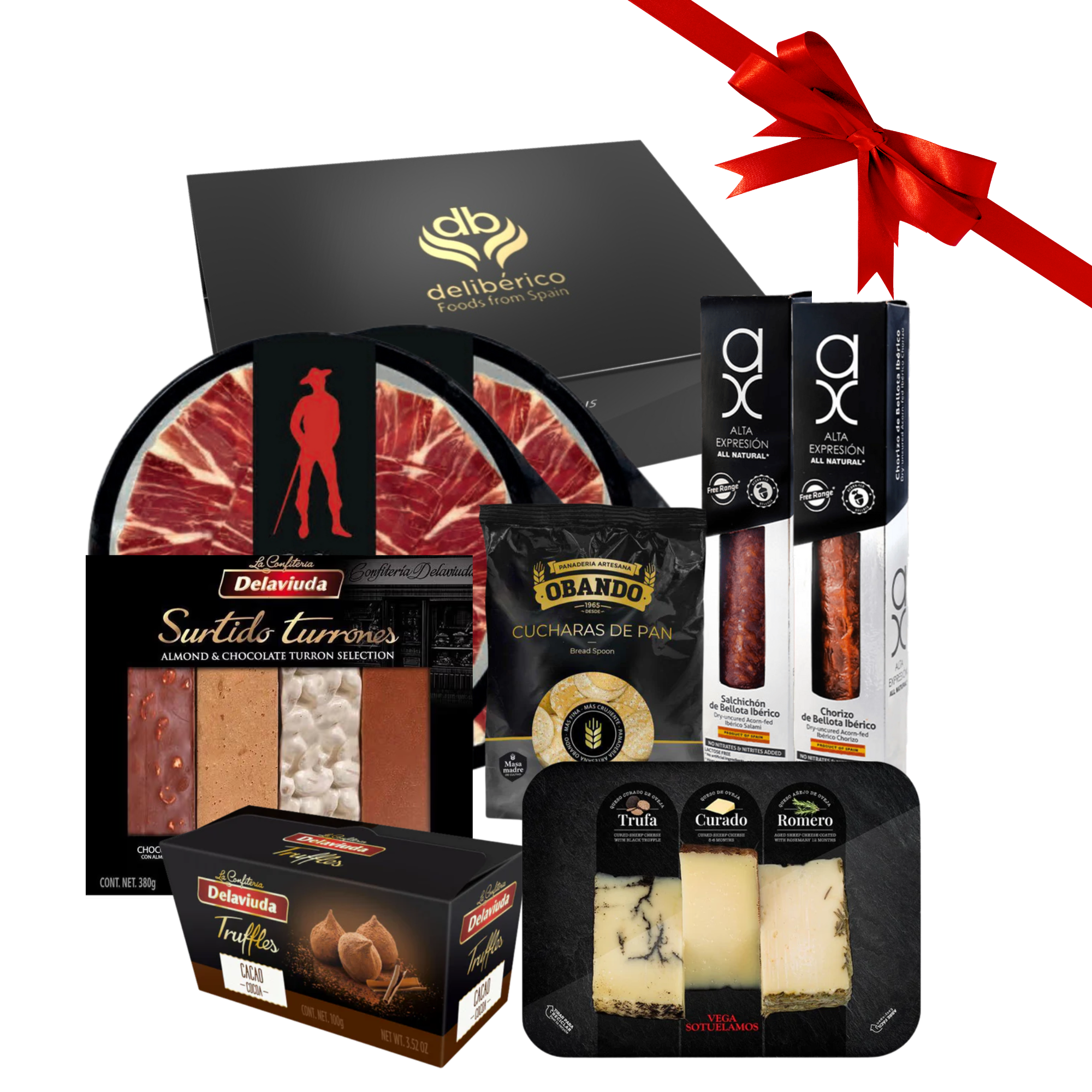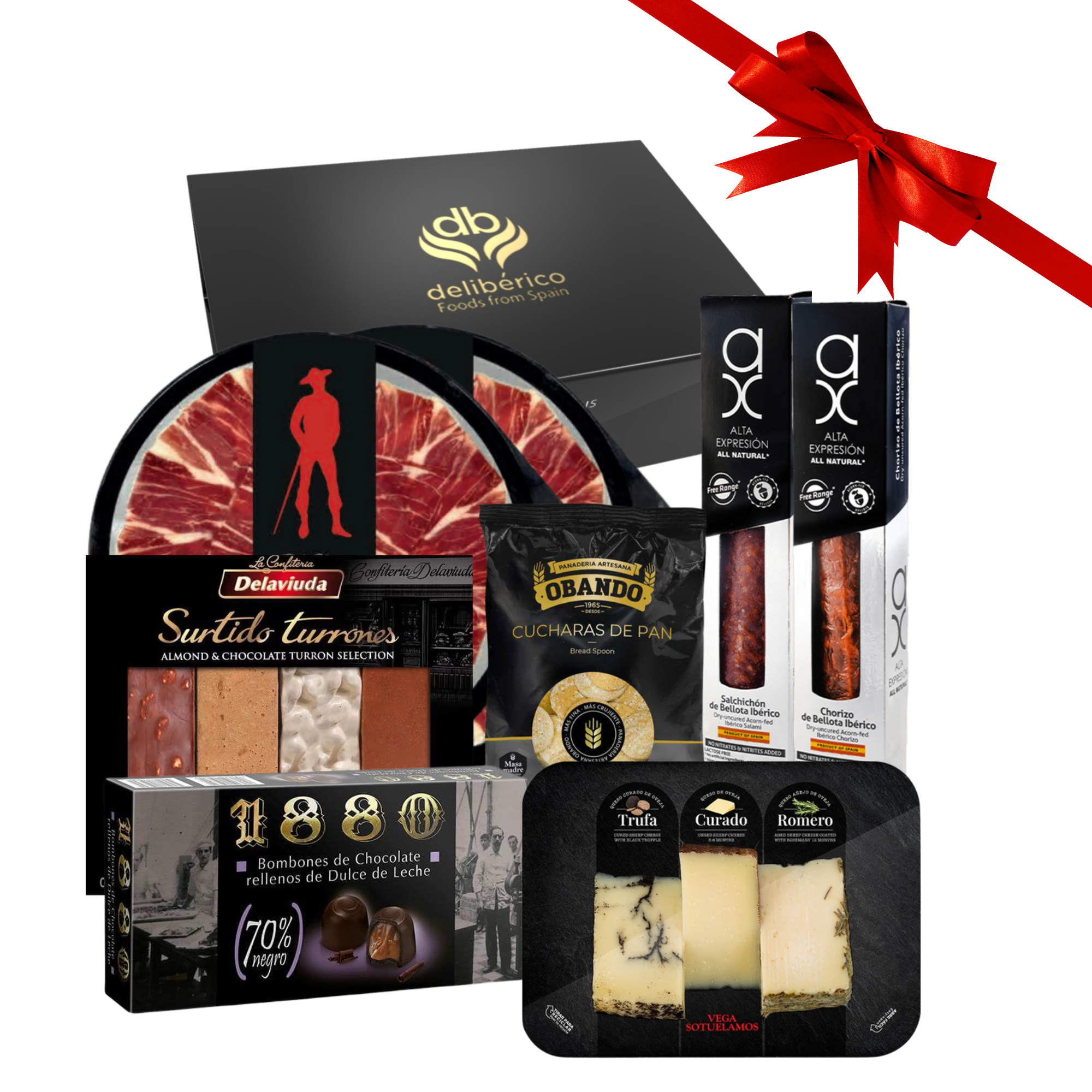 This elegant collection brings together the best of Iberico tradition and fine artisan cheese, complemented by Obando’s crispy bread spoons, premium dark chocolate bonbons, and a festive selection of traditional Spanish nougats.
