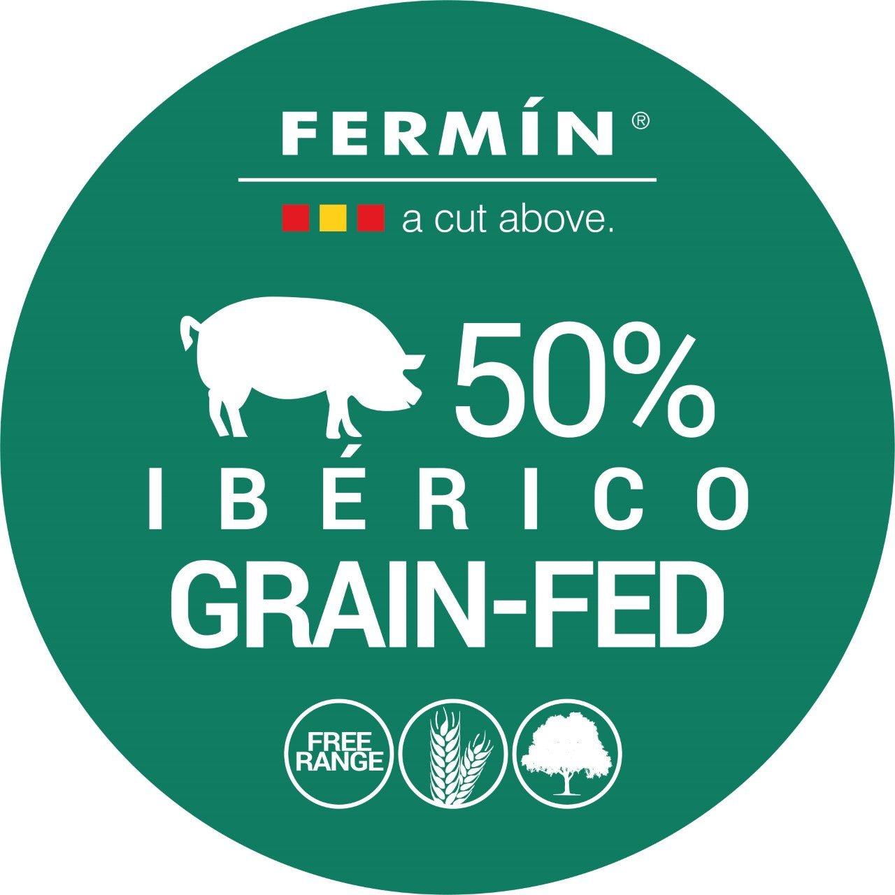 The texture and aroma of Fermin Iberico products are a result of a slow curing process in a unique environment. In this 50% line, the free range 100% Iberico is cross bred with the 100% Duroc pig resulting in a 50% Iberico pig that is fed on grains, grasses, roots and anything nature provides. The result offers a subtle and sophisticated taste in a format suitable for the everyday.