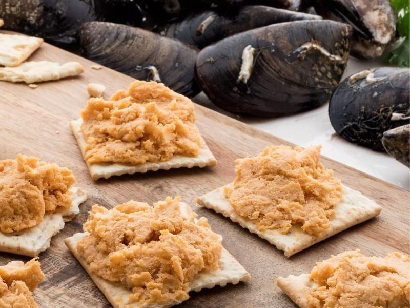 Mussels (35%), hake, butter, sunflower oil, vinegar, milk protein, egg powder, spices and salt. Contains: Fish, milk, and eggs.