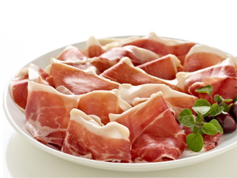 Jamón Serrano Bodega is known for its balanced, savory flavor with nutty undertones and firm yet melt-in-the-mouth texture.