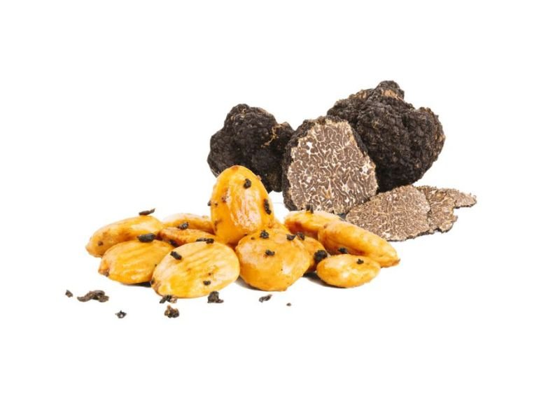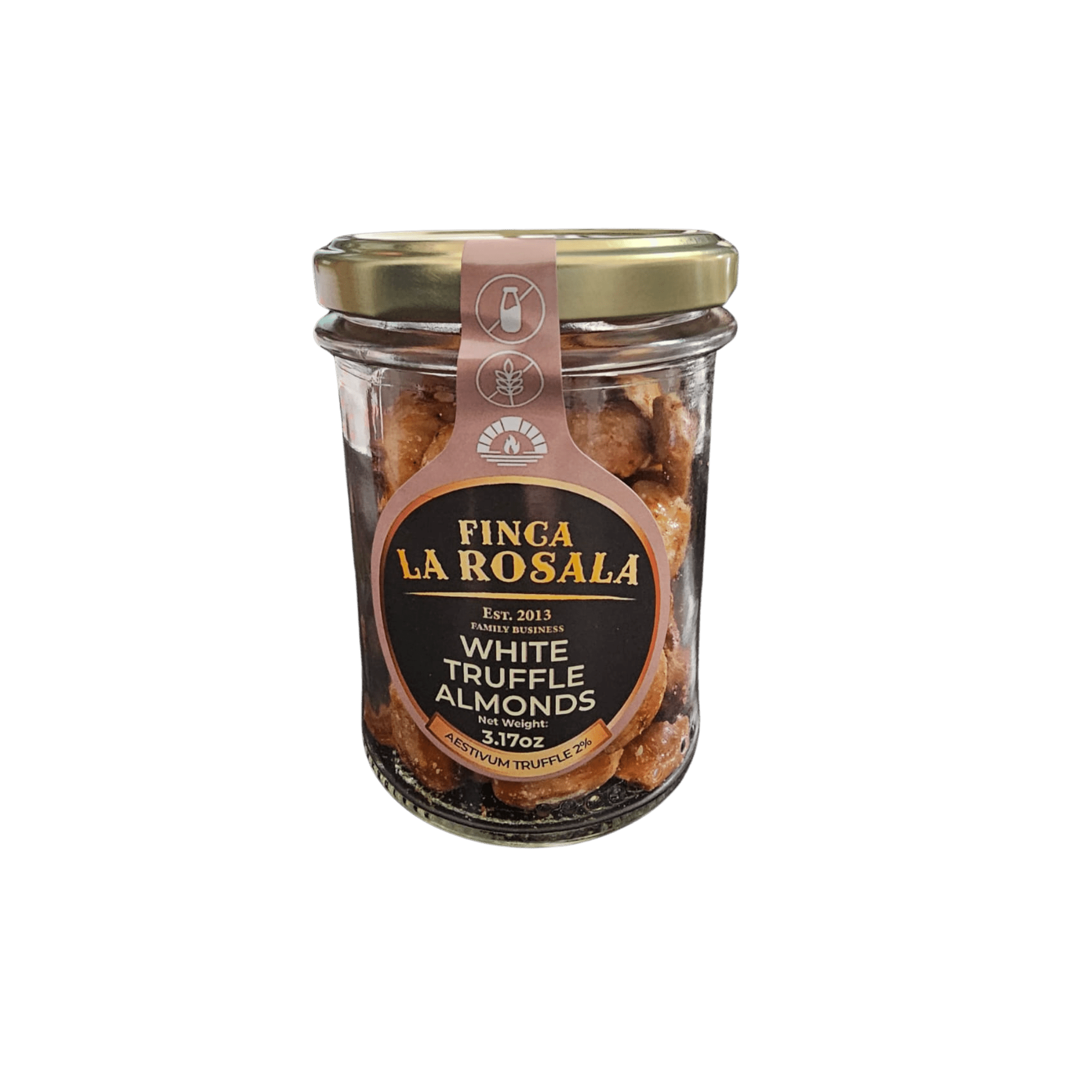 "Valencia" almond without skin, its great texture and flavor make it the most appreciated almond by consumers. Hand roasted with a mixture of whole cane sugar, Aestivum truffle and truffle aroma.